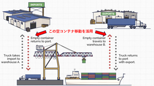 これにより、輸入後に空となる海上コンテナを、