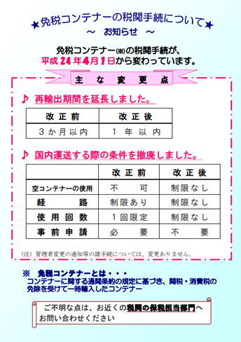 免税コンテナーの税関手続が平成24年4月から変わりました(税関リーフレット)