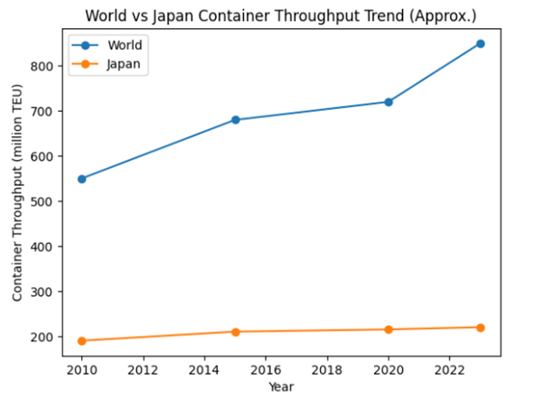 | 日本全体 | 約 22 million TEU | 2023〜2024年水準(外貿+内貿) |
