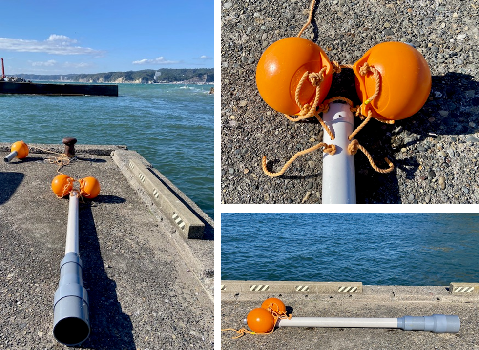 市販の塩ビ管や既存の海洋設備を利用し、低コストで地元事業者も製作・運用可能。